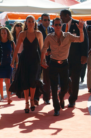 Jennifer Lopez and hubby Marc Anthony bring their star power and celebrity’s friends such as, Kris Allen, Kenan Thompson, Omari Hardwick and Sean Kingston to THE ORANGE CARPET during the Dolphins VS. Saint at Land Shark Stadium on Sunday in Miami. Kim Kardashian walks the orange carpet in support of her Men Reggie Bush who played for the New Orleans Saints.